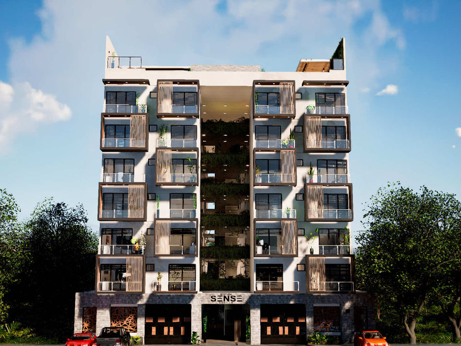 La arquitectura de SENSE reúne los mejores aspectos de la vivienda tradicional con espacios modernos de la ciudad. Cuenta con un acceso peatonal controlado y adicional a las entradas al estacionamiento tipo herradura y doble altura. El Roof top cuenta con una superficie de 326.27 m2.